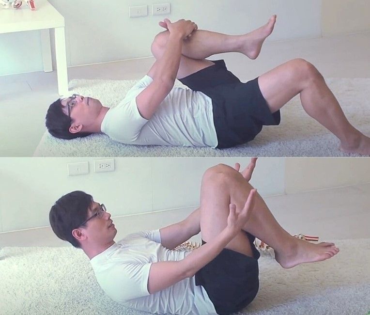 1.『仰臥蹬腿』:非常適合年紀大的長輩或者是膝蓋痛的人。