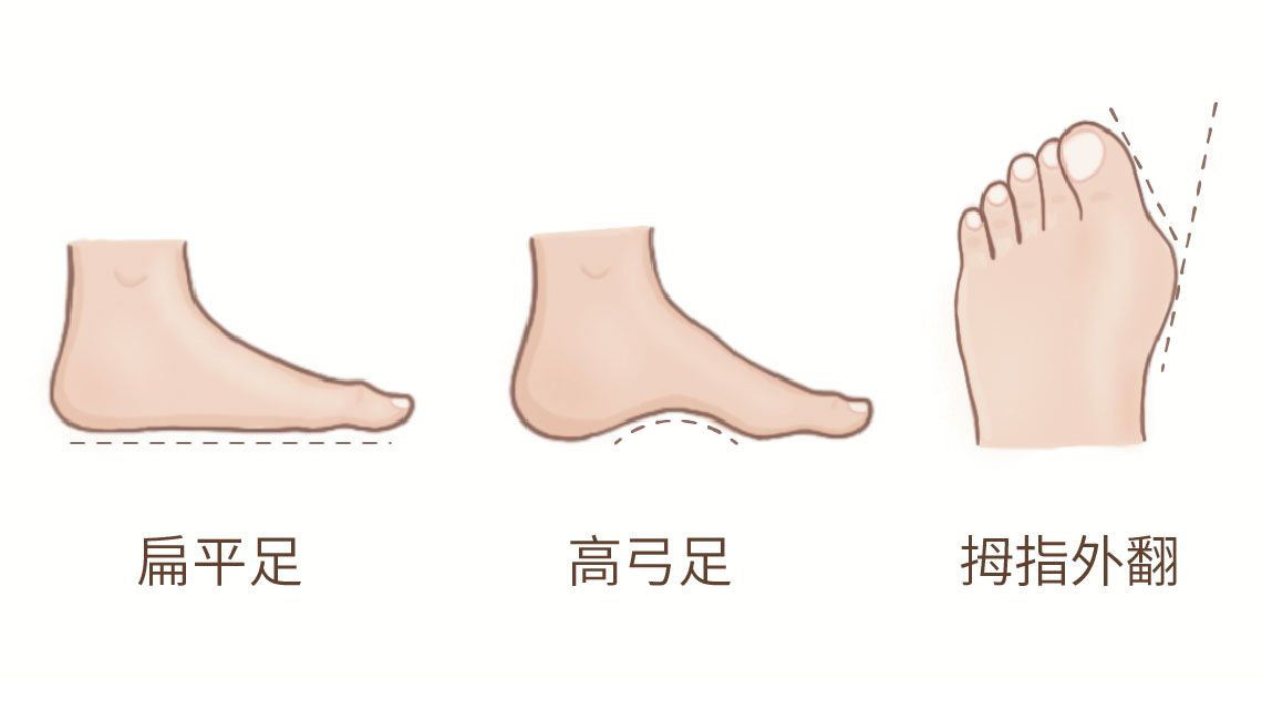 【足型】是指足部力學的失常,例如:扁平足、高弓足、拇指外翻等。