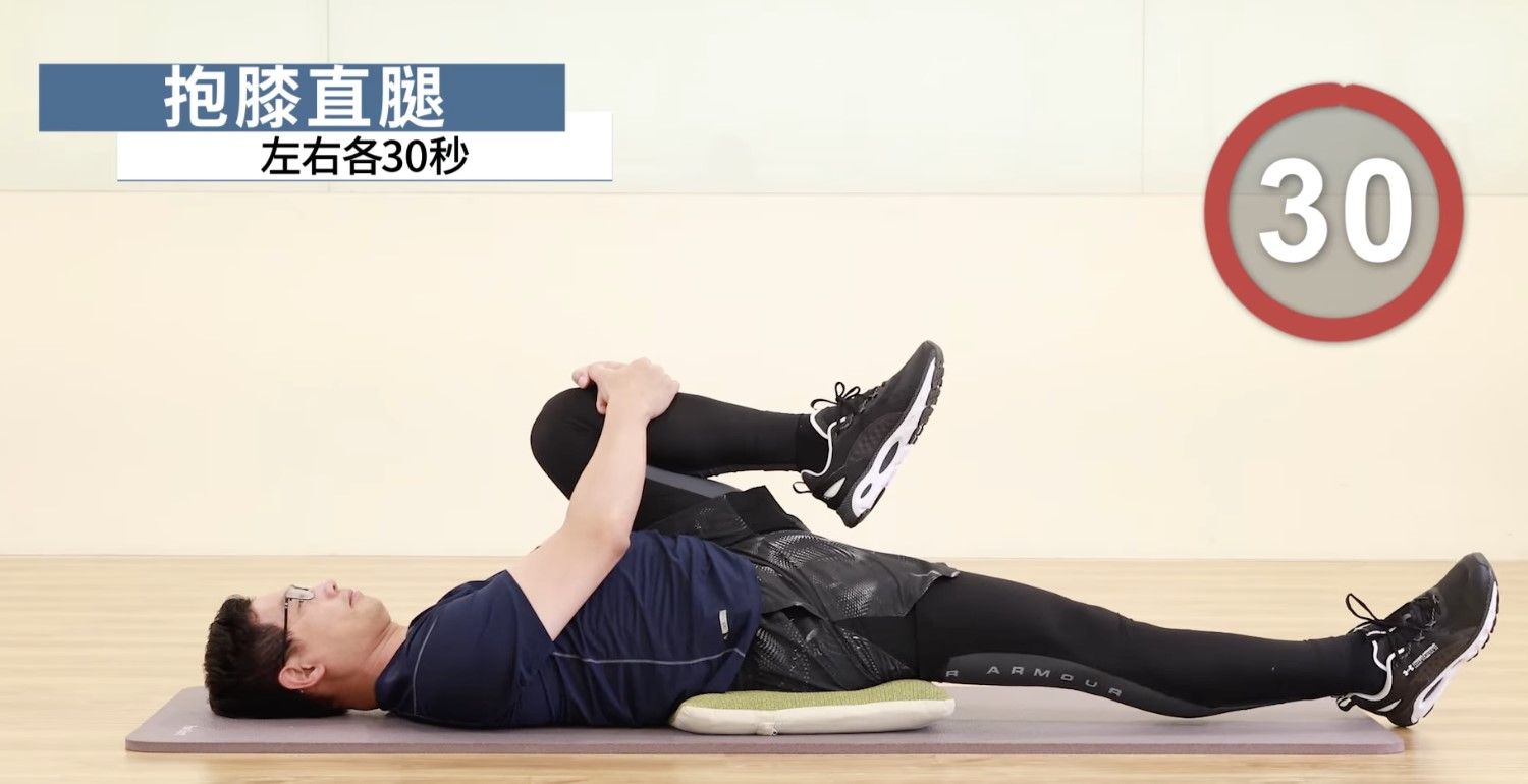 4.抱膝時配合深呼吸,停留 30 秒左右