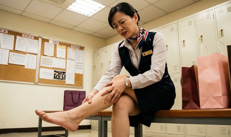 長時間站立時,許多人會不自覺把重心往一側腿壓、膝蓋過度後伸或腳尖外八,這些看似輕微的小習慣,久站後下肢肌肉長期不平均負荷,導致腳酸、僵硬與小腿腫脹。