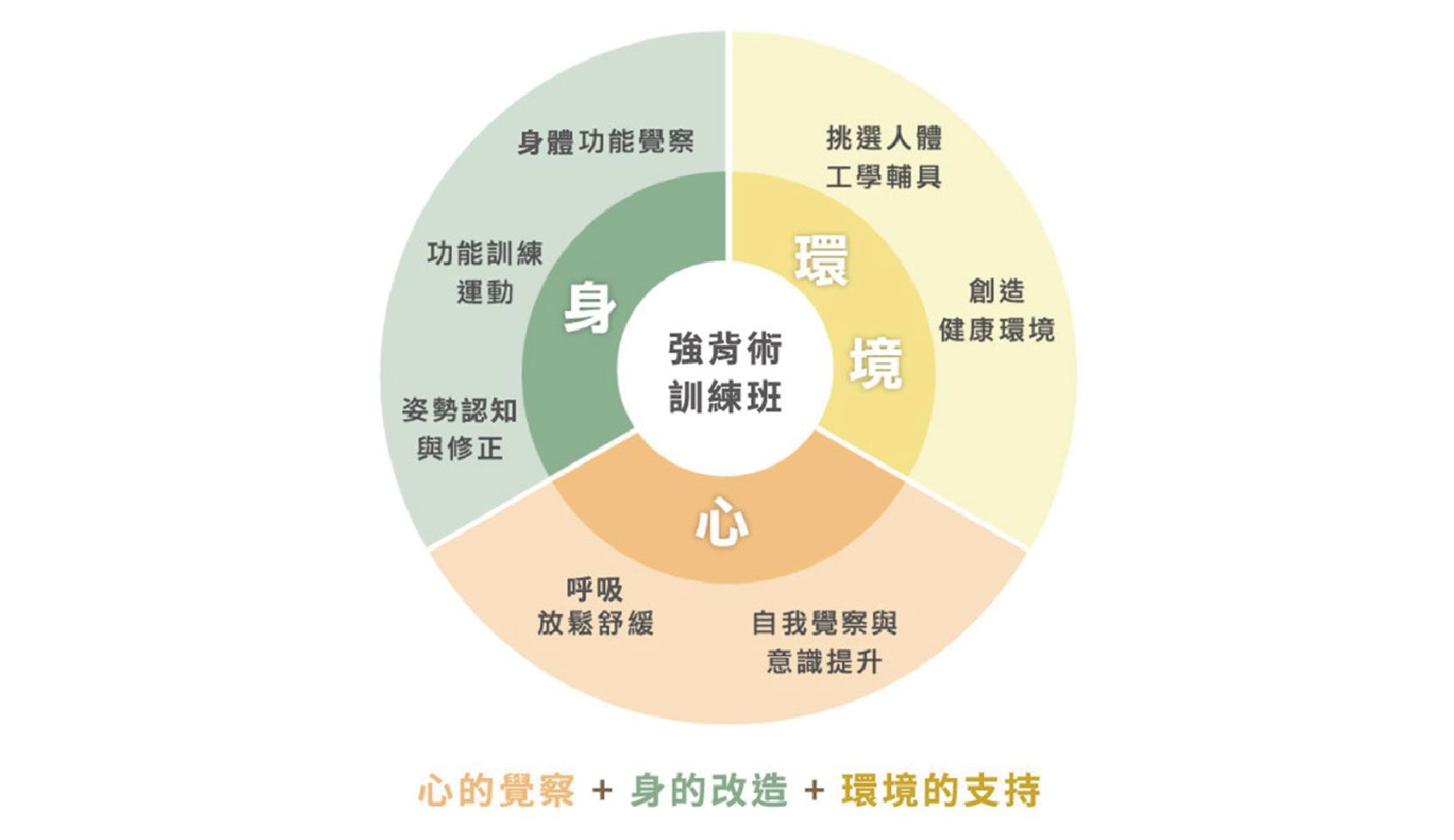 身體智慧以護脊研習課程為核心,我們從身、心、環境三個基礎出發,結合心的覺察、身的改造與環境的支持,提供全方位的生活護脊方案,幫助您建立健康的生活方式。無論是護脊課程還是人體工學產品,我們都致力於協助大眾自主創造健康生活與美滿的人生。
